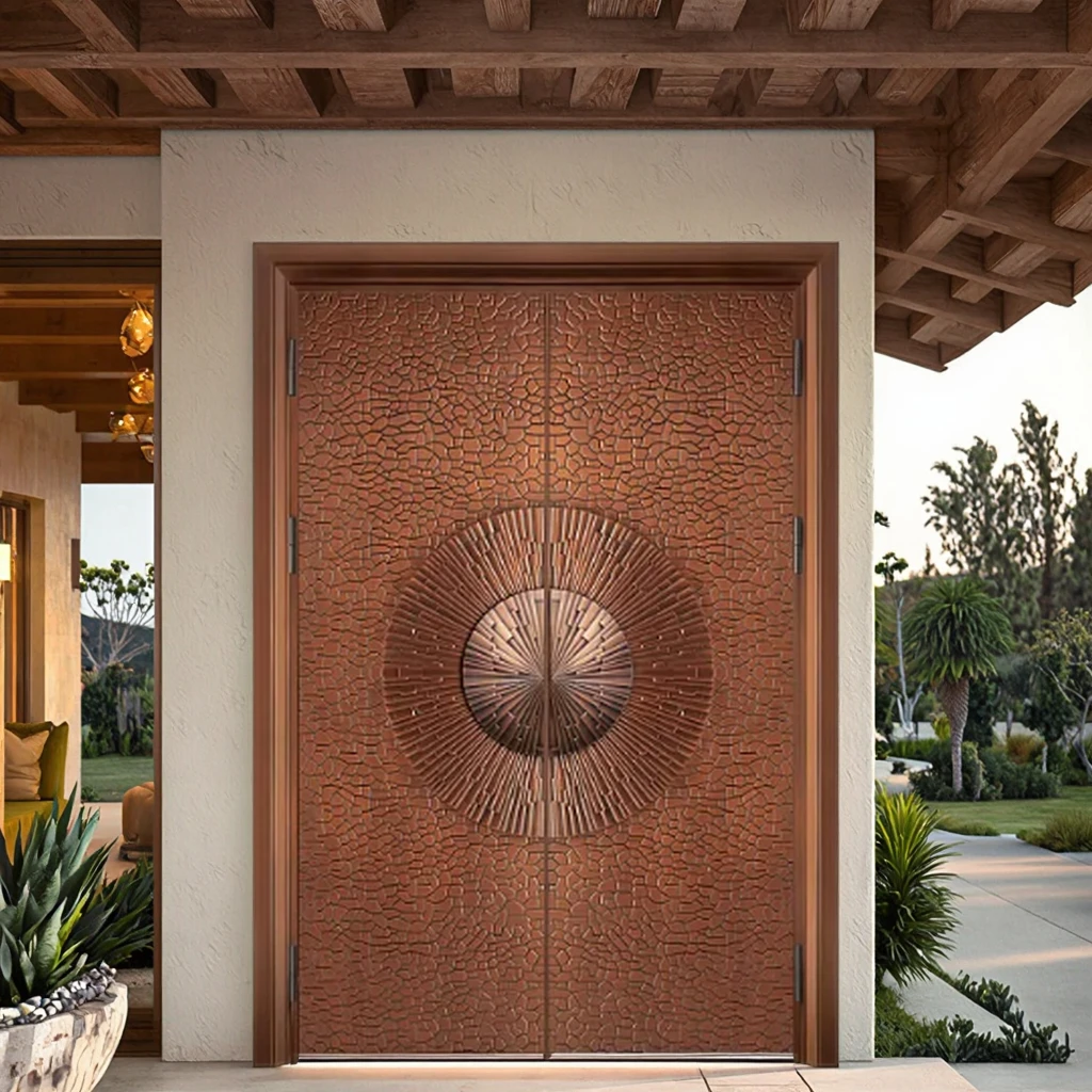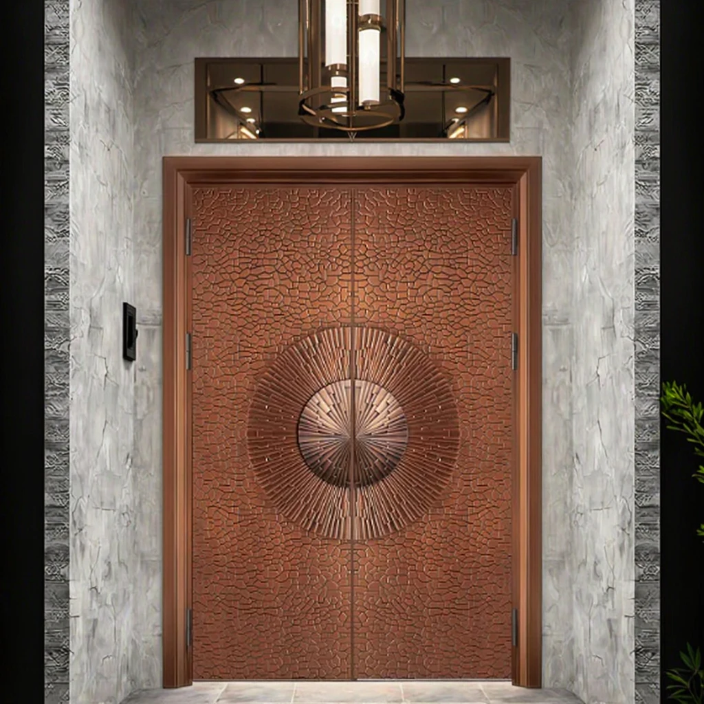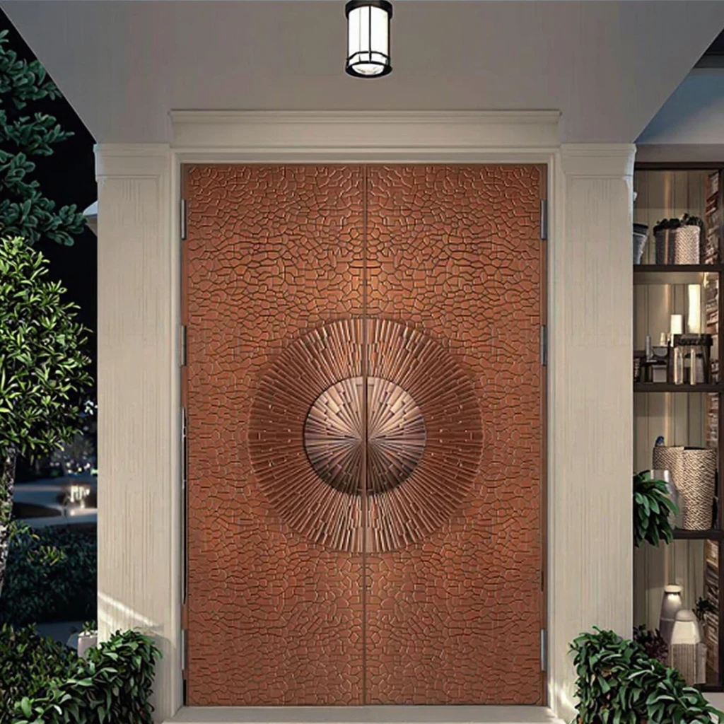 Luxury Custom Modern Stainless Steel Front Entrance Pivot Door Gold Color Villa Entry with Smart Lock for Exterior Application
